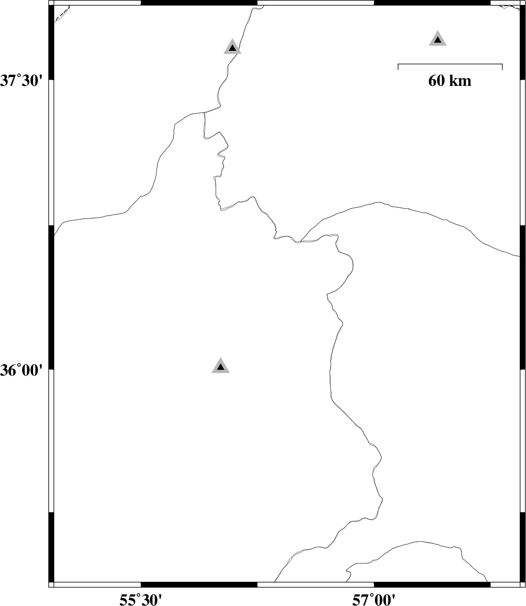 | 2012/09/16 | 06:02:03.5 | 10:32:03.5 | 37.59 | 56.71 | 34 | ML2.3 | Khorasan(north) Province, 21 km West of Ashkhaneh |