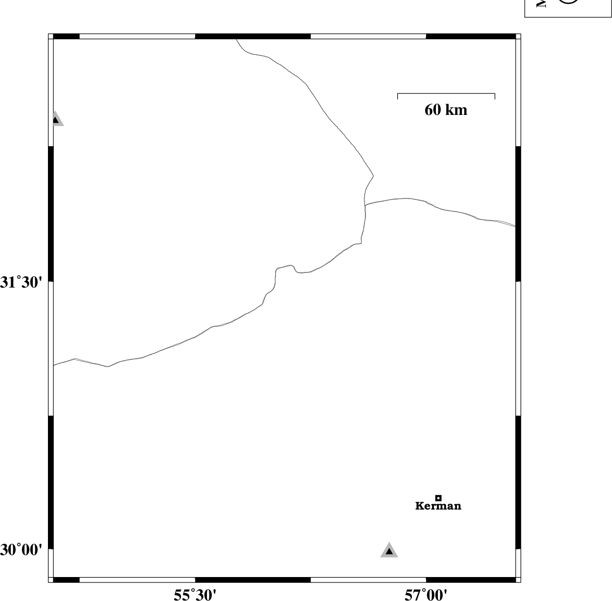 | 2012/09/26 | 09:49:43.3 | 13:19:43.3 | 31.34 | 56.08 | 46 | ML2.8 | Kerman Province, 70 km West of Ravar | ||