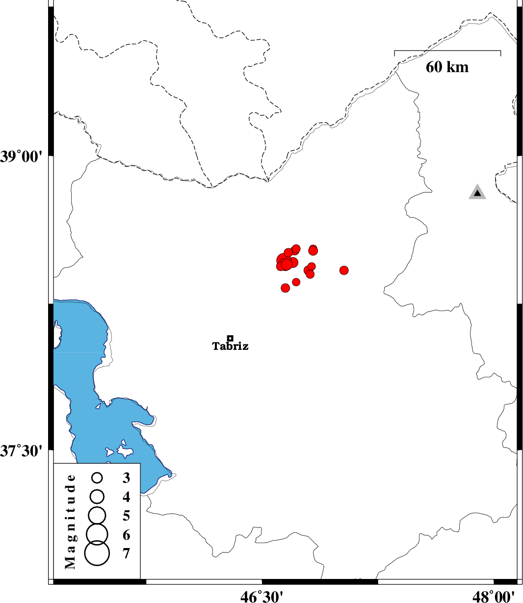 2012/09/26 03:06:33.4 06:36:33.4 38.4646.717 ML2.9 Azarbaijan Sharghi Province, 34 km West of Ahar