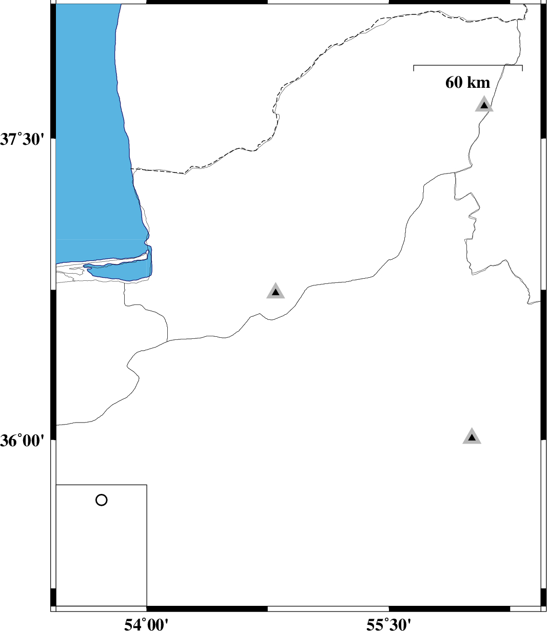 | 2012/10/01 | 19:23:29.1 | 22:53:29.1 | 36.66 | 54.94 | 15 | ML3.8 | Semnan Province, 27 km North of Shahrud |