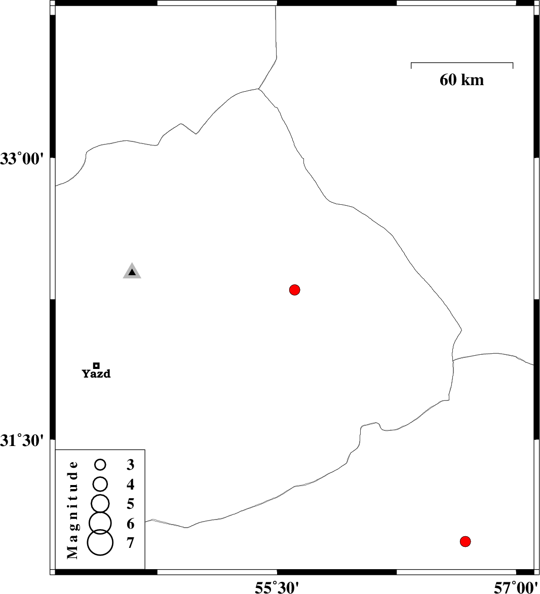 | 2012/10/05 | 03:16:23.1 | 06:46:23.1 | 30.95 | 56.68 | 15 | ML3 | Kerman Province, 19 km North-East of Zarand |