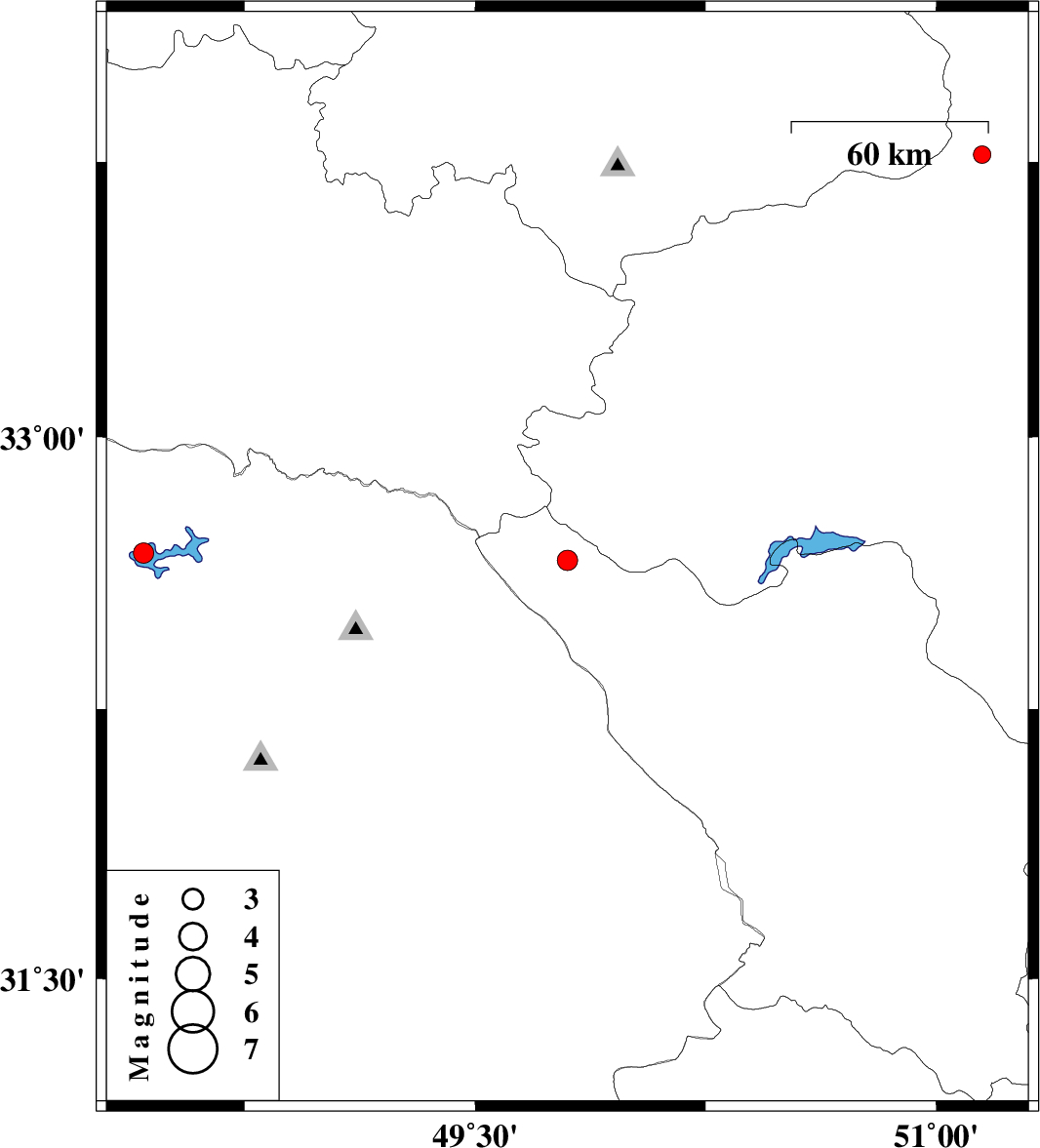 | 2012/10/15 | 02:41:31.3 | 06:11:31.3 | 32.68 | 48.42 | 14 | ML3 | Khoozestan Province, 25 km North of Andimeshk | ||