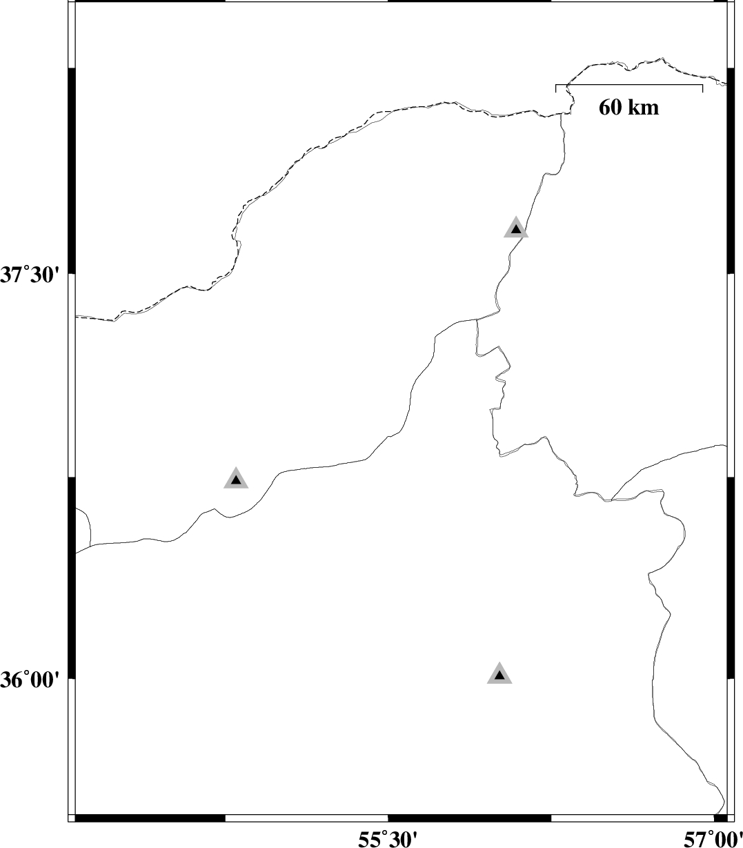 2012/10/21 19:07:50.1 22:37:50.1 36.9755.626 ML3.7 Semnan Province, 36 km South-East of Minodasht
