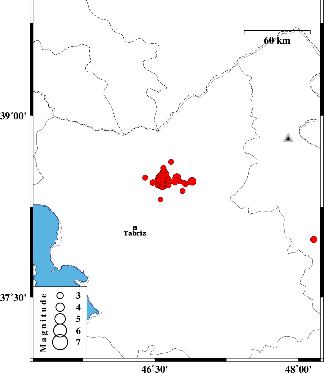 2012/11/07 06:50:50.1 10:20:50.1 38.4946.418 ML2.6 Azarbaijan Sharghi Province, 48 km North-East of Tabriz