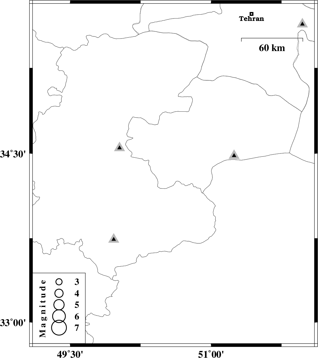 | 2012/11/12 | 13:52:07.3 | 17:22:07.3 | 34.31 | 50.6 | 6 | ML1.6 | Qom Province, 36 km North of Delijan |