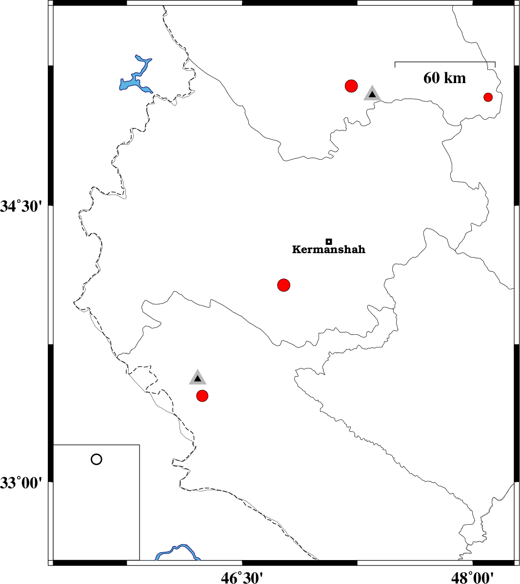 | 2012/11/19 | 14:11:24.8 | 17:41:24.8 | 34.07 | 46.77 | 37 | ML3.7 | Kermanshah Province, 16 km East of Eslam Abad-E-Gharb | ||