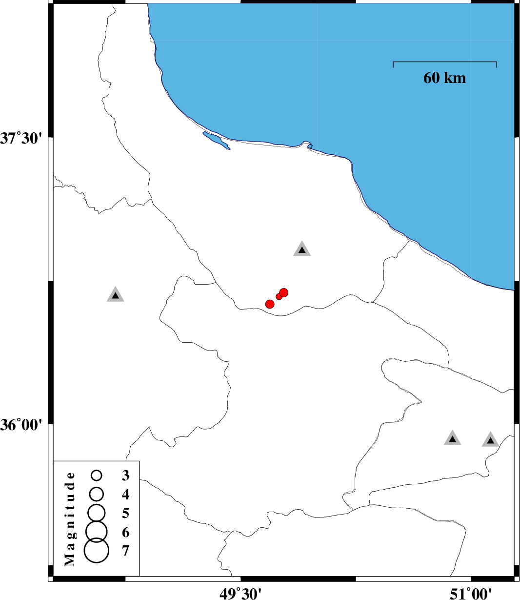 | 2012/11/16 | 22:25:30.6 | 01:55:30.6 | 36.63 | 49.69 | 14 | ML2.5 | Gilan Province, 32 km South-East of Rudbar |