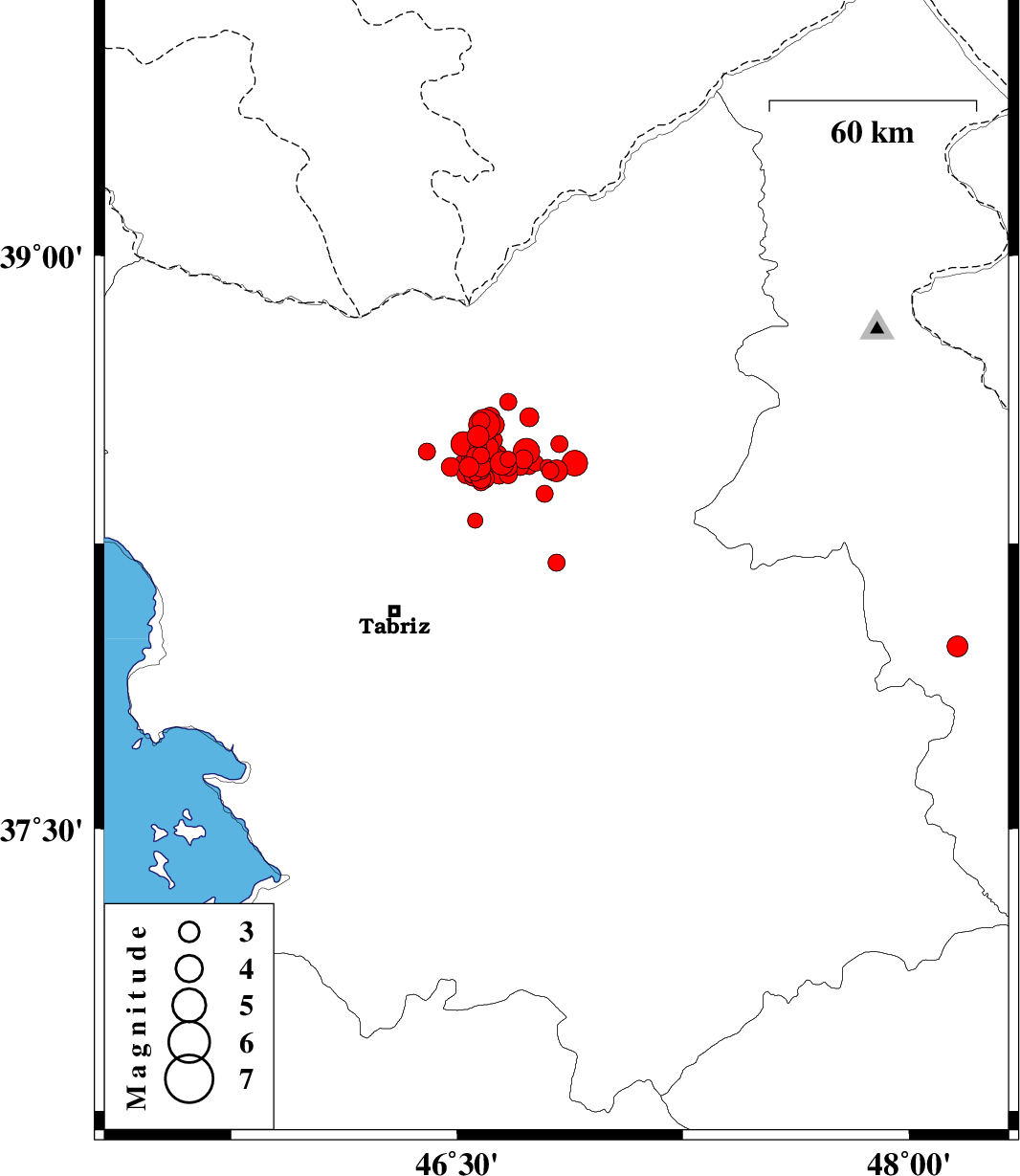 2012/11/07 06:50:50.1 10:20:50.1 38.4946.418 ML2.6 Azarbaijan Sharghi Province, 48 km North-East of Tabriz