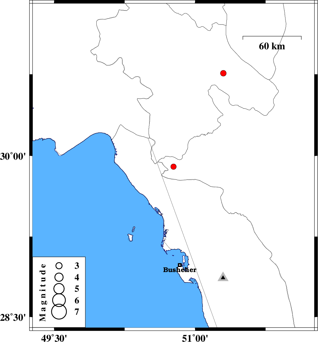 | 2012/12/10 | 21:34:35.5 | 01:04:35.5 | 30.76 | 51.3 | 14 | ML2.8 | Kohkiluieh va boyerahmad Province, 19 km South-West of Sisakht |