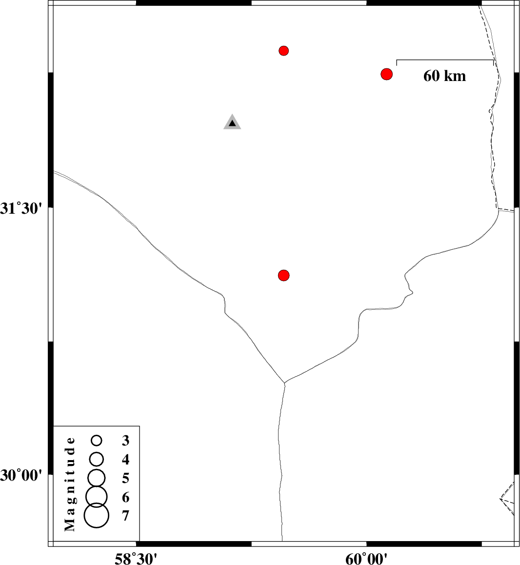 | 2012/11/17 | 14:33:38.3 | 18:03:38.3 | 32.37 | 59.46 | 14 | ML2.8 | Khorasan(south) Province, 42 km South-West of Sarbisheh |
