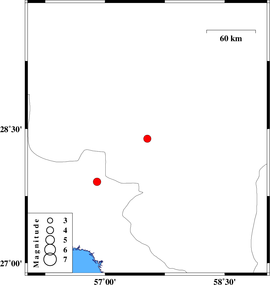 | 2012/12/09 | 00:14:06.4 | 03:44:06.4 | 27.91 | 56.9 | 14 | ML4.4 | Hormozgan Province, 63 km North-West of Dehbarez |
