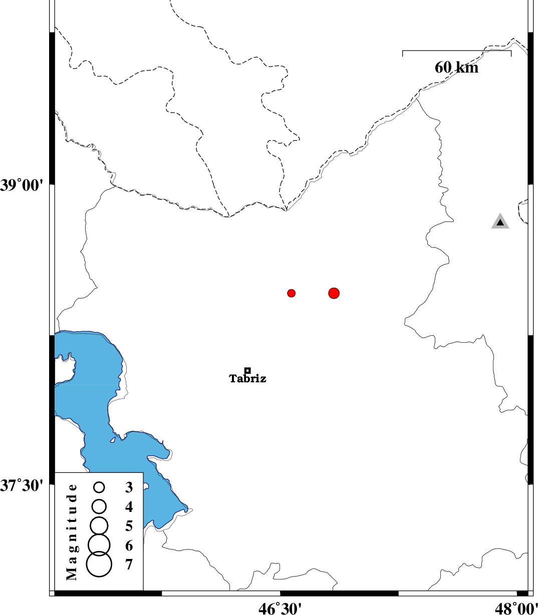 | 2012/12/25 | 01:08:17.7 | 04:38:17.7 | 38.46 | 46.57 | 14 | ML2.2 | Azarbaijan Sharghi Province, 44 km West of Ahar |