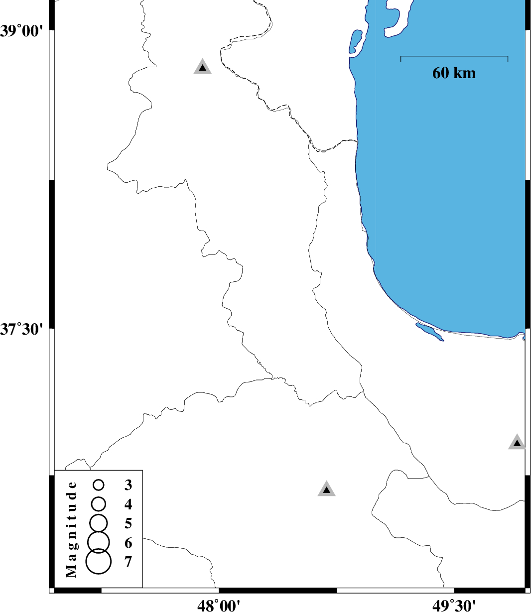 | 2012/12/30 | 06:41:18.1 | 10:11:18.1 | 37.67 | 48.45 | 14 | ML3.2 | Ardebil Province, 6 km Givi |