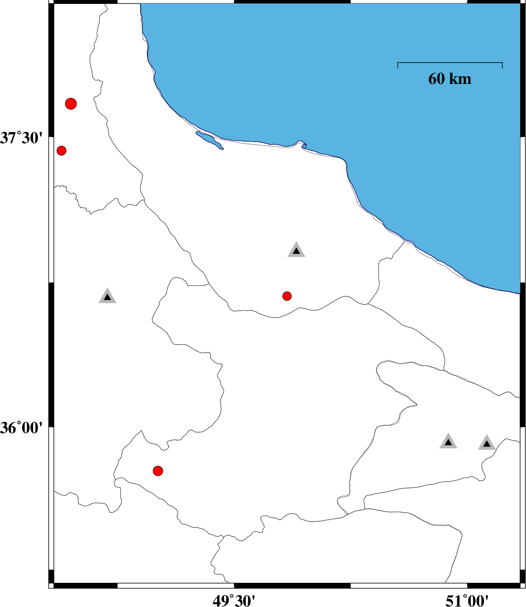 | 2013/01/04 | 16:10:08.2 | 19:40:08.2 | 36.68 | 49.84 | 14 | ML2.5 | Gilan Province, 52 km South of Siahkal | ||