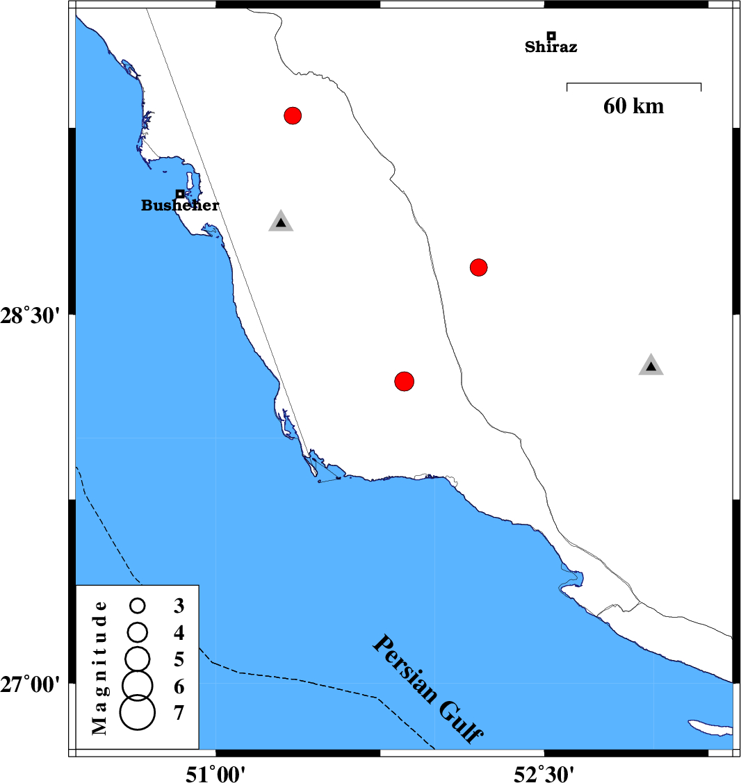 2013/01/05 12:50:01.2 16:20:01.2 28.2351.8618 ML4 Bushehr Province, 49 km North-West of Bandar-e kangan
