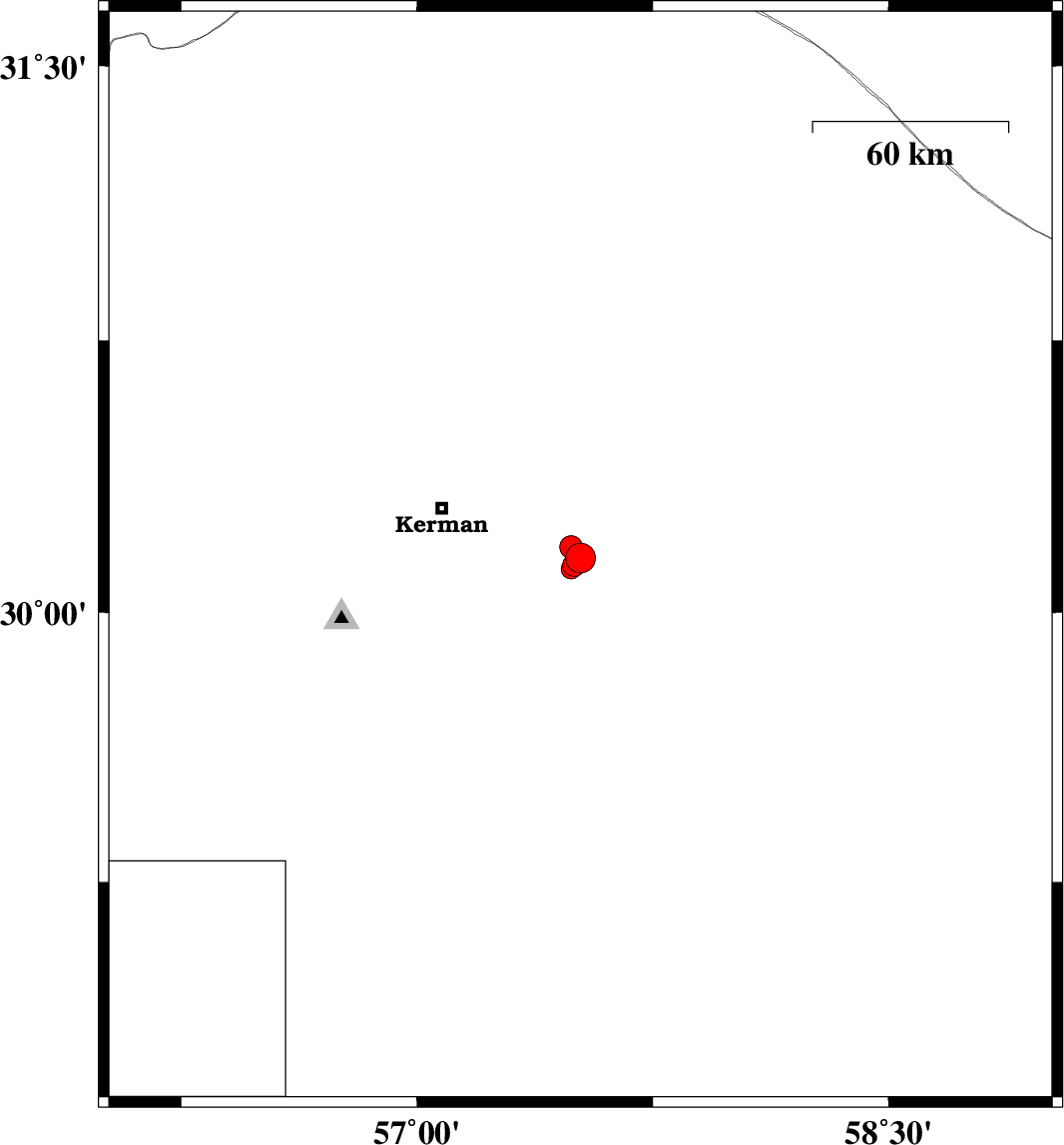 | 2012/12/31 | 19:13:10.3 | 22:43:10.3 | 30.12 | 57.49 | 14 | ML2.8 | Kerman Province, 44 km South-East of Kerman |