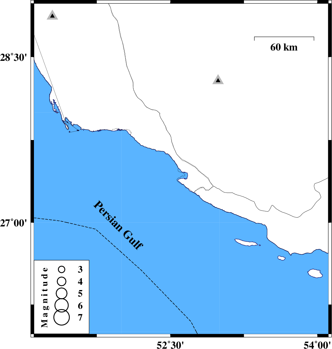 | 2013/01/22 | 12:25:52.7 | 15:55:52.7 | 27.48 | 52.61 | 14 | ML3.3 | Bushehr Province, 29 km West of Mehr |