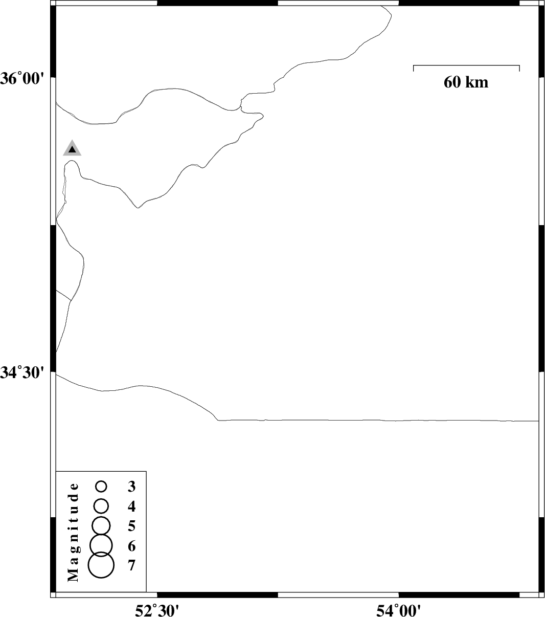 | 2013/01/30 | 01:56:38.5 | 05:26:38.5 | 34.86 | 53.37 | 15 | ML3.3 | Semnan Province, 79 km South of Semnan |
