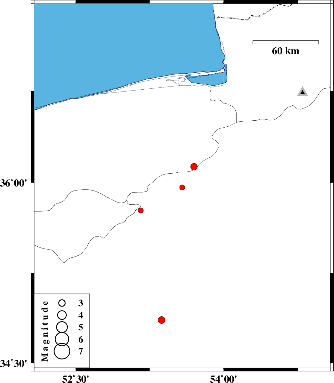 | 2013/02/12 | 11:15:03.9 | 14:45:03.9 | 36.13 | 53.7 | 14 | ML3.1 | Mazandaran Province, 57 km East of Pol-E-Sefid | ||