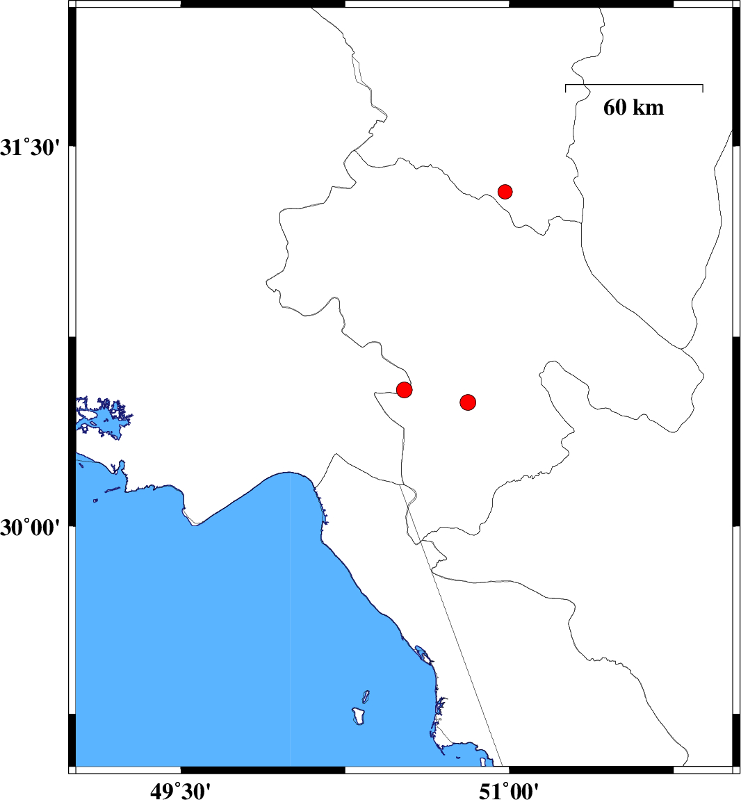| 2013/02/16 | 12:00:33.9 | 15:30:33.9 | 30.49 | 50.81 | 18 | ML3.2 | Kohkiluieh va boyerahmad Province, 15 km North of Dogonbadan | ||