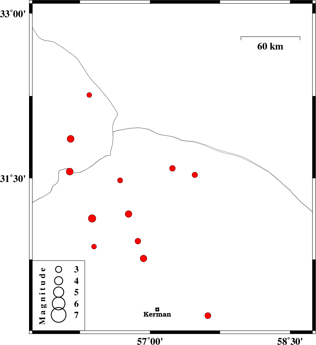 2013/02/10 01:56:27.8 05:26:27.8 30.2357.6218 ML2.9 Kerman Province, 52 km East of Kerman
