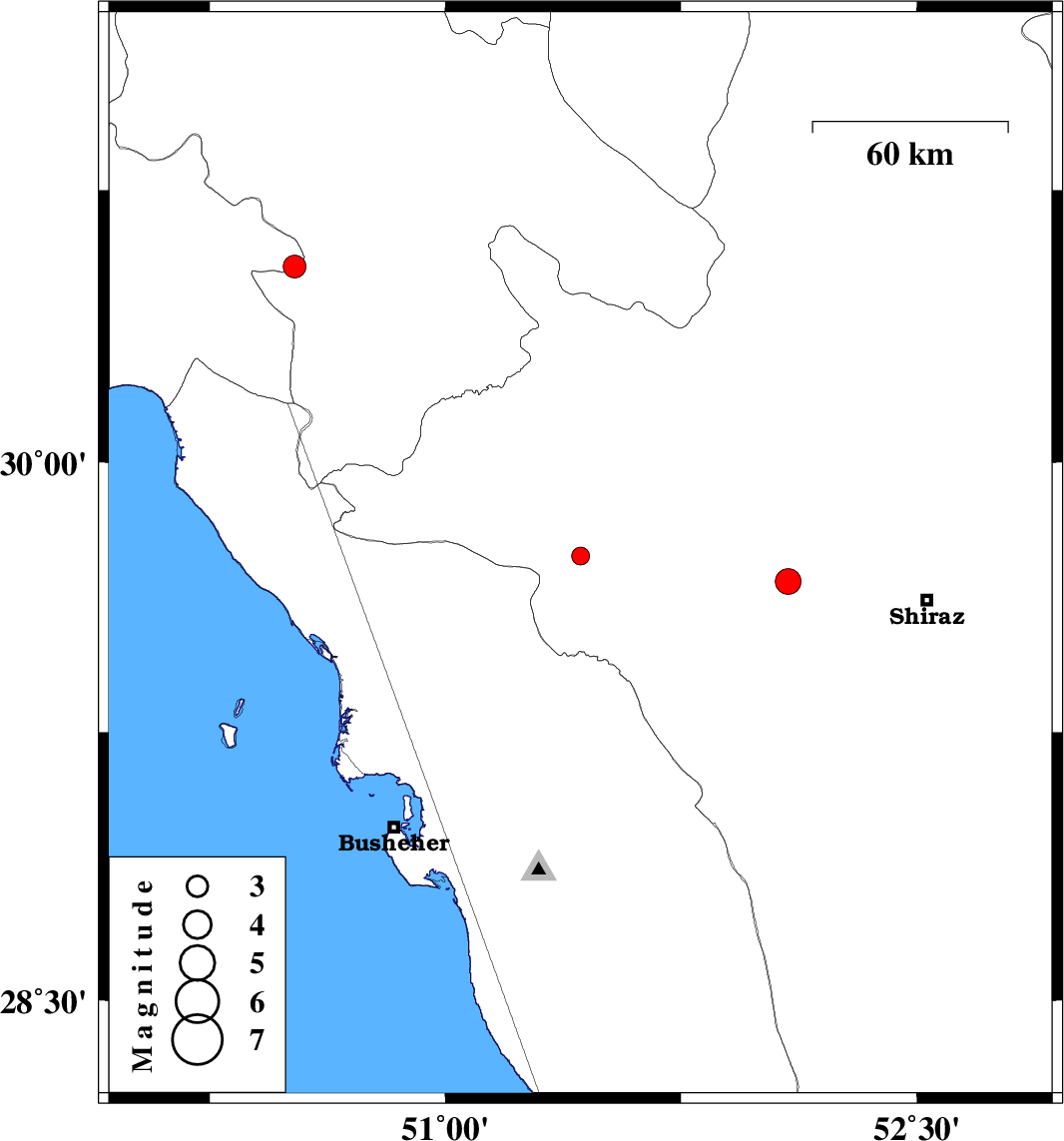 | 2013/02/26 | 00:54:54.3 | 04:24:54.3 | 29.74 | 51.43 | 18 | ML2.5 | Fars Province, 26 km North-West of Kazerun | ||