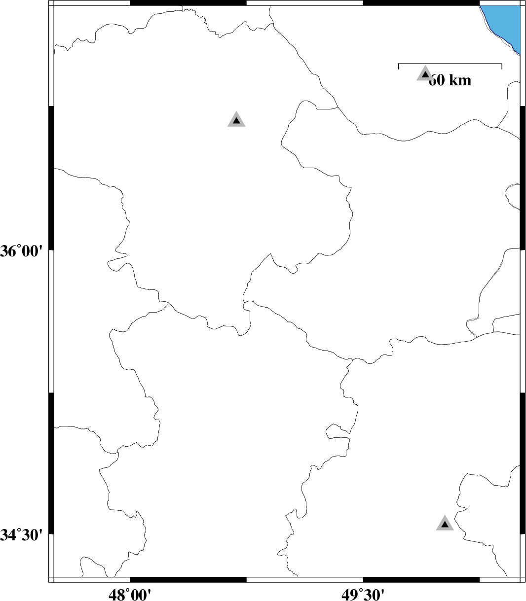 | 2013/02/25 | 19:23:28.3 | 22:53:28.3 | 35.7 | 49.14 | 30 | ML1.8 | Ghazvin Province, 37 km North of Razan | ||