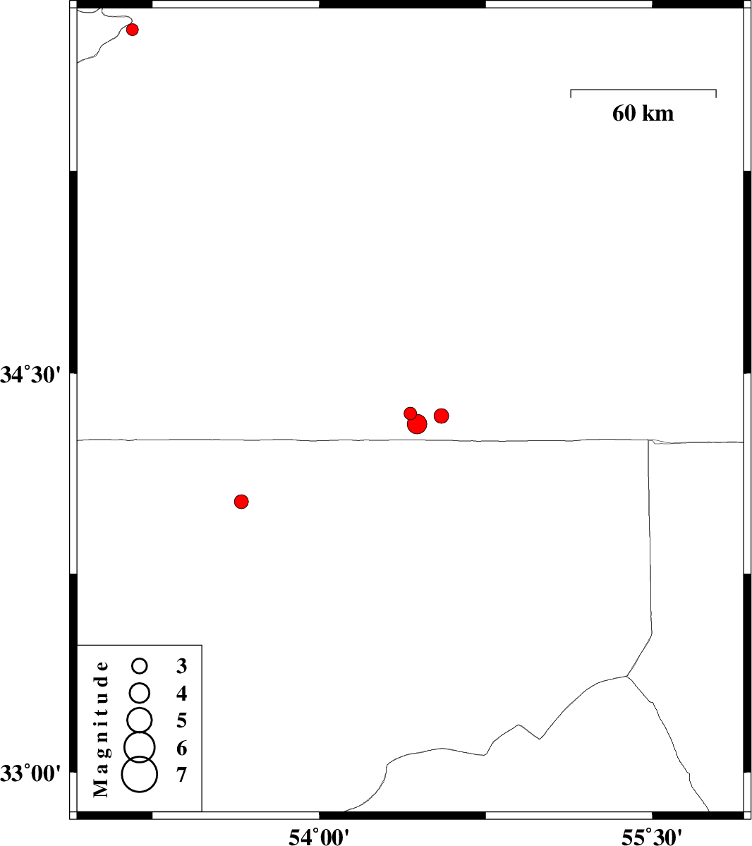2013/03/04 09:47:53.7 13:17:53.7 34.3154.4415 ML3.9 Semnan Province, 206 km South of Damghan