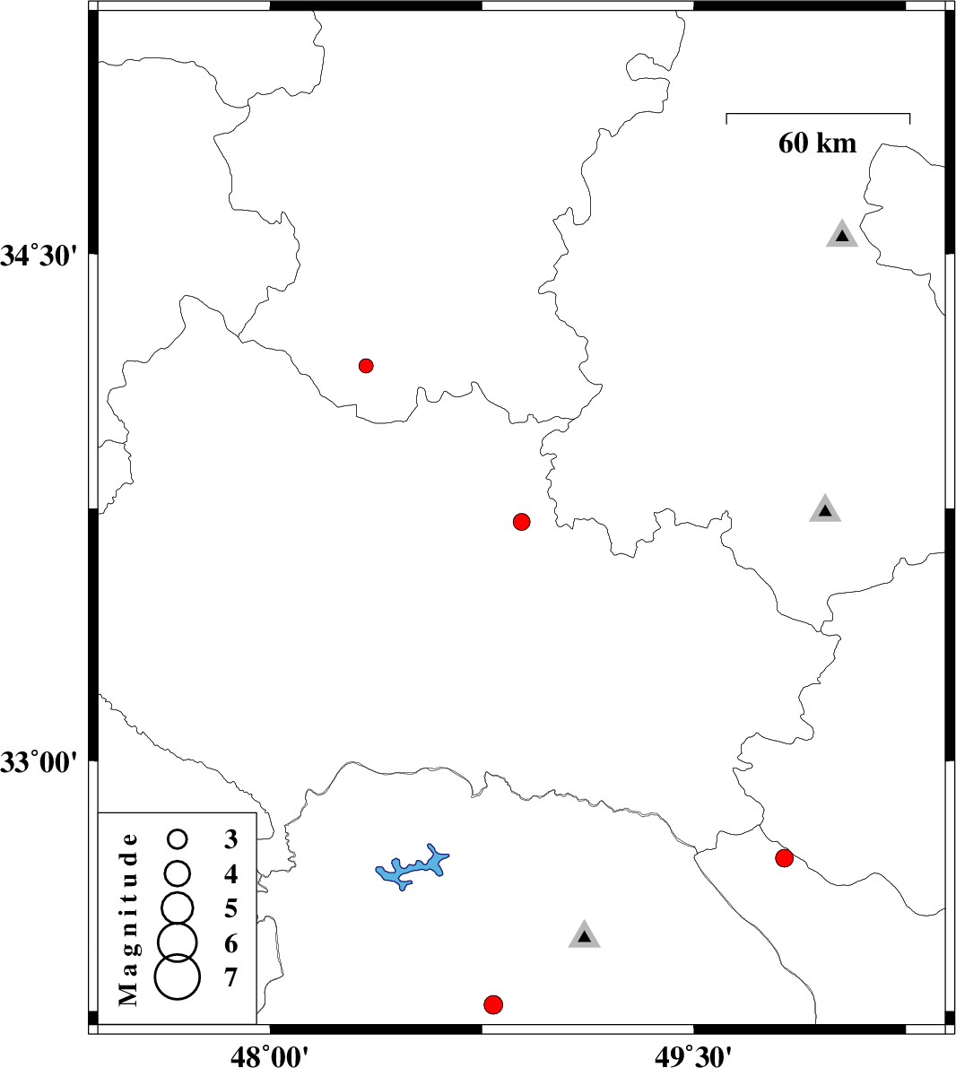| 2013/03/15 | 08:34:40.1 | 12:04:40.1 | 33.71 | 48.89 | 15 | ML2.7 | Lorestan Province, 24 km South-East of Borujerd | ||