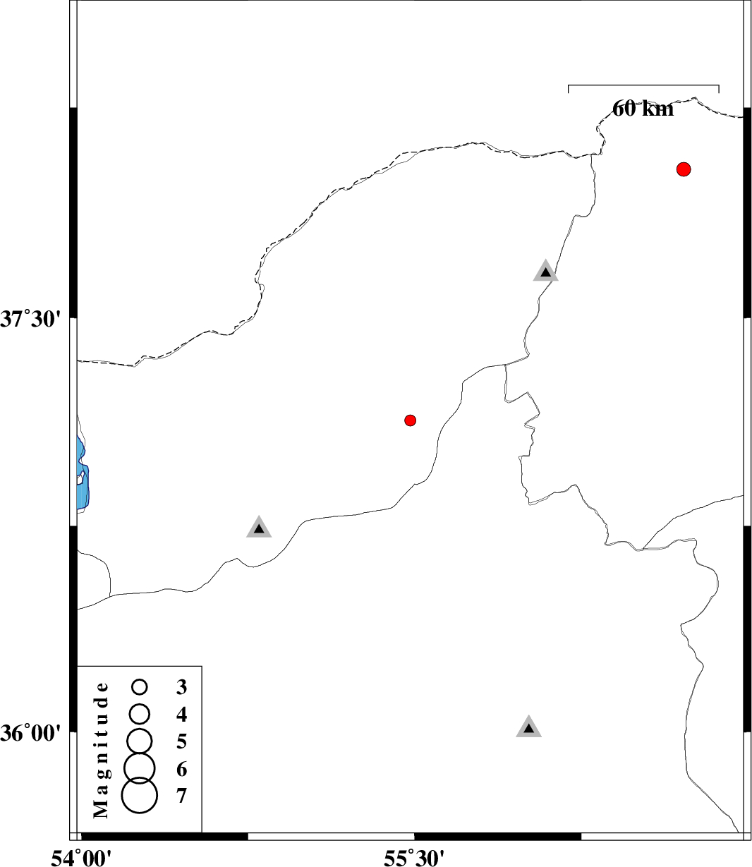 | 2013/03/25 | 13:39:24.0 | 18:09:24.0 | 37.13 | 55.48 | 14 | ML2.2 | Golestan Province, 14 km South of Minodasht | ||