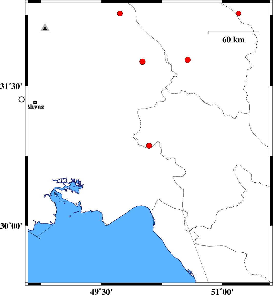Khoozestan Province, 29 km South-East of Behbahan | |