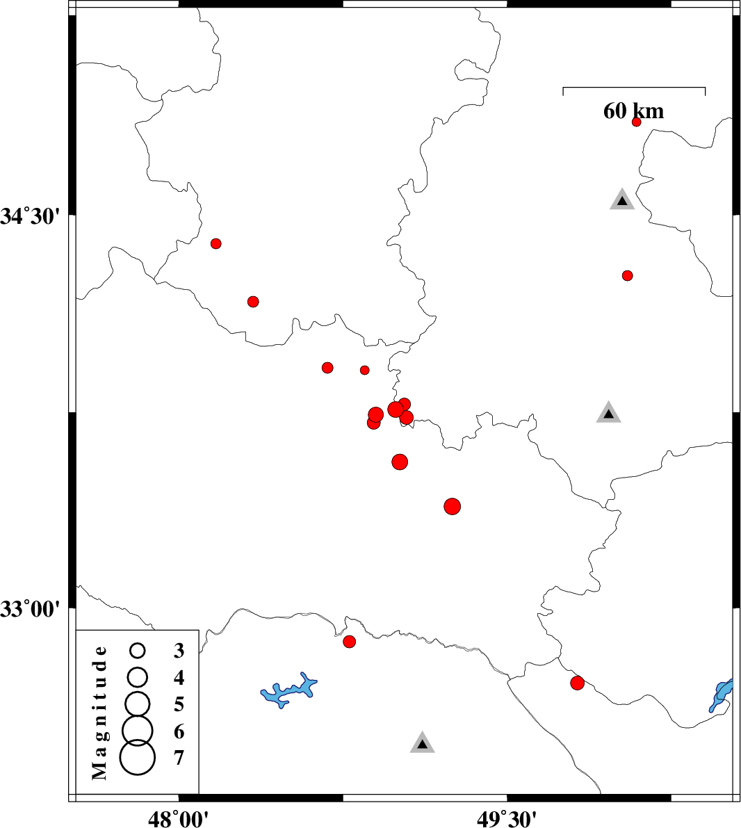 2013/03/21 07:23:21.6 10:53:21.6 32.8347.7514 ML3.5 Ilam Province, 36 km South of Pol-e dokhtar