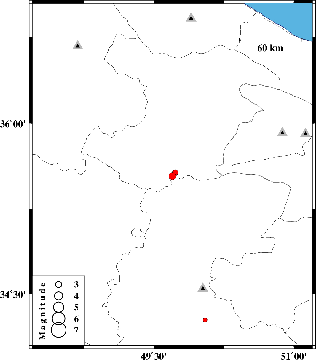 | 2013/04/02 | 16:10:41.2 | 20:40:41.2 | 35.57 | 49.73 | 15 | ML2.8 | Ghazvin Province, 55 km South of Takestan |
