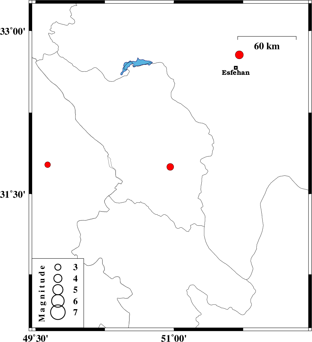 | 2013/04/19 | 20:22:34.6 | 00:52:34.6 | 32.78 | 51.71 | 14 | ML4 | Esfahan Province, 13 km North of Esfahan | ||