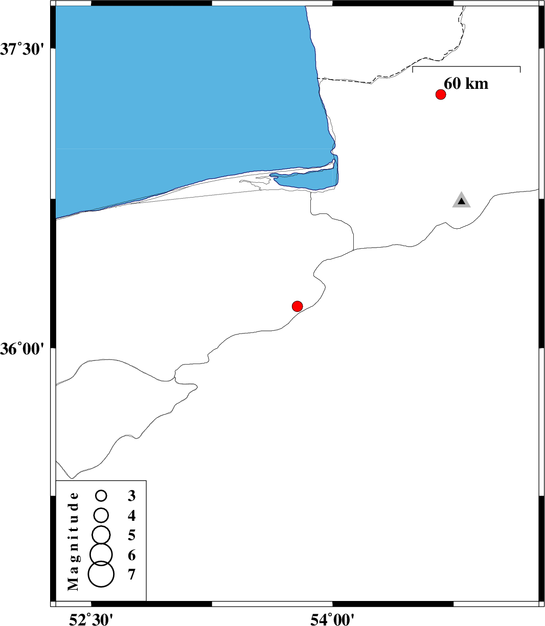 | 2013/04/24 | 02:47:56.1 | 07:17:56.1 | 36.21 | 53.78 | 18 | ML3 | Mazandaran Province, 51 km West of Damghan | ||