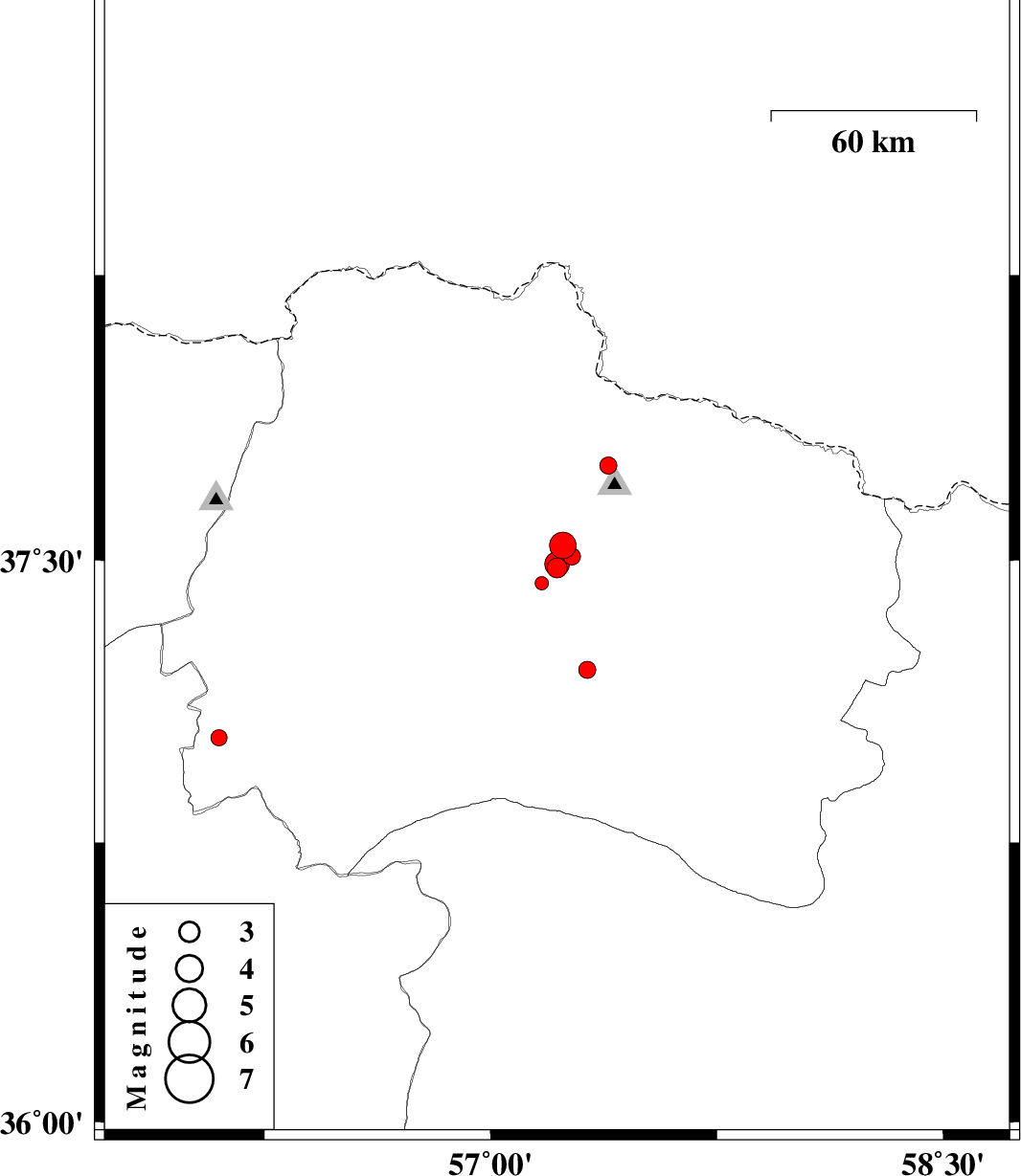 2013/05/10 15:55:09.4 20:25:09.4 37.5457.2437 ML3.9 Khorasan(north) Province, 12 km Bojnurd