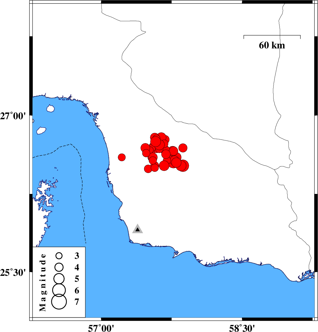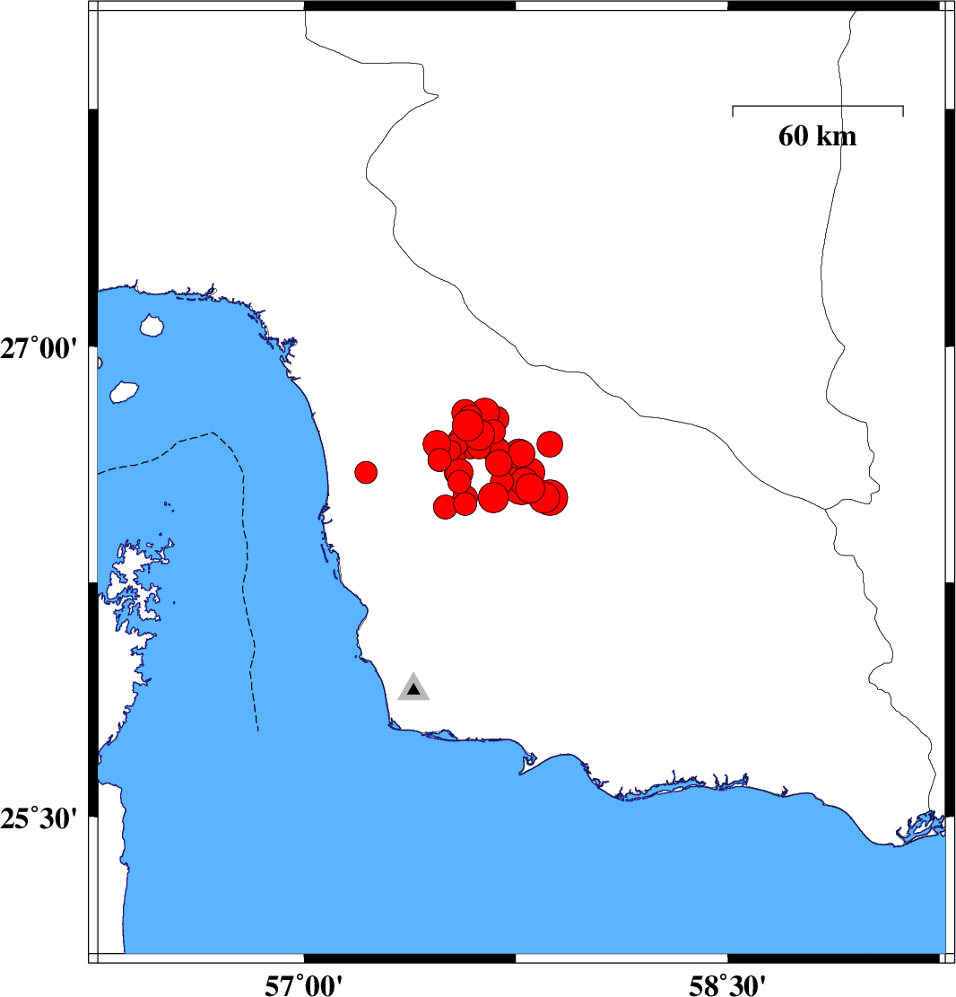 2013/05/11 02:08:08.5 06:38:08.5 26.5657.7715 Ms6.2 Hormozgan Province, 103 km North of Jask
