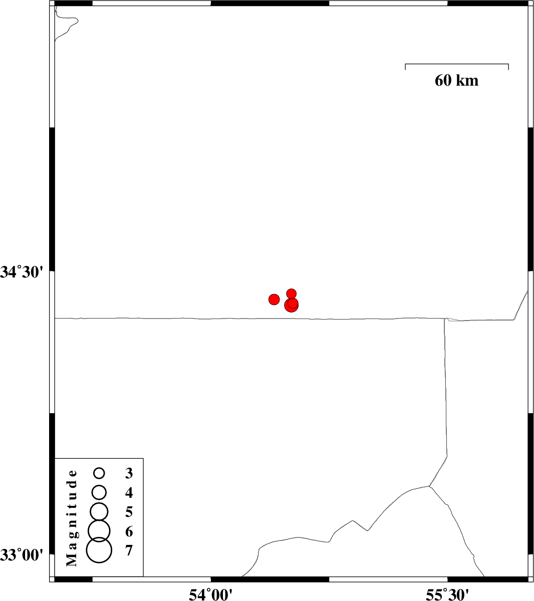 | 2013/05/07 | 20:23:00.3 | 00:53:00.3 | 34.32 | 54.51 | 14 | ML4 | Semnan Province, 206 km South-East of Damghan | ||