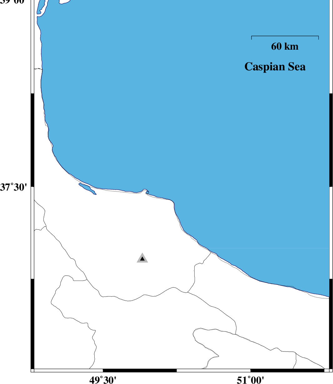 | 2013/05/15 | 08:57:48.2 | 13:27:48.2 | 37.51 | 50.3 | 14 | ML2.7 | Caspian Sea, 41 km North of Rudsar | ||