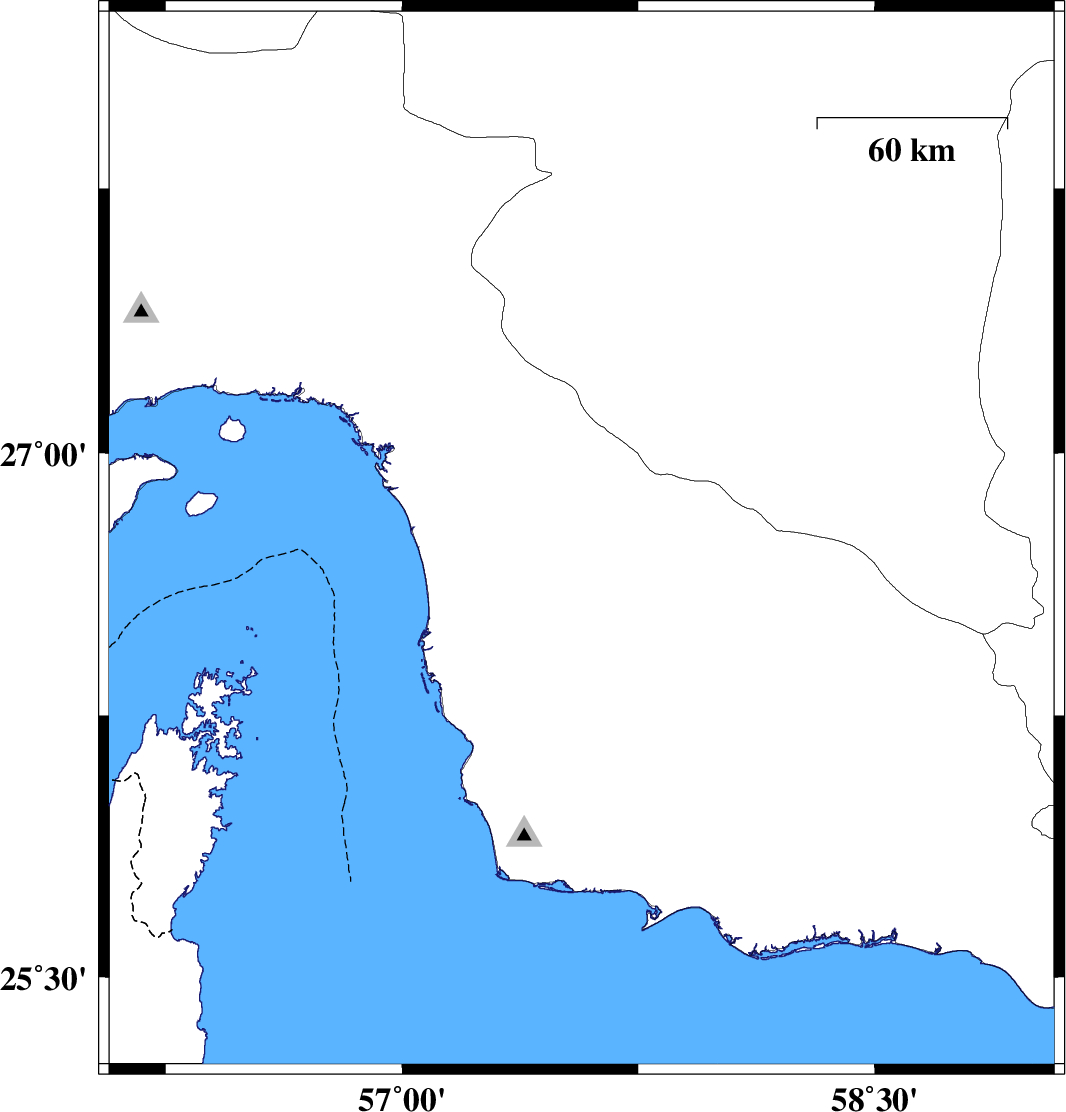 2013/05/14 10:02:36.7 14:32:36.7 26.5157.614 ML4 Hormozgan Province, 100 km South-East of Manujan