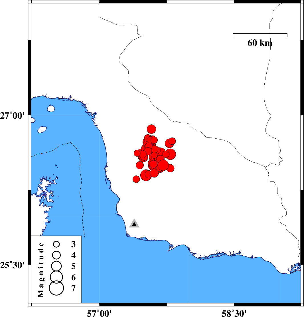 2013/05/14 10:02:36.7 14:32:36.7 26.5157.614 ML4 Hormozgan Province, 100 km South-East of Manujan