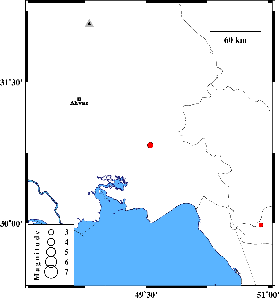 | 2013/05/21 | 17:24:02.4 | 21:54:02.4 | 30.83 | 49.55 | 18 | ML3.2 | Khoozestan Province, 17 km West of Omidiyeh | ||