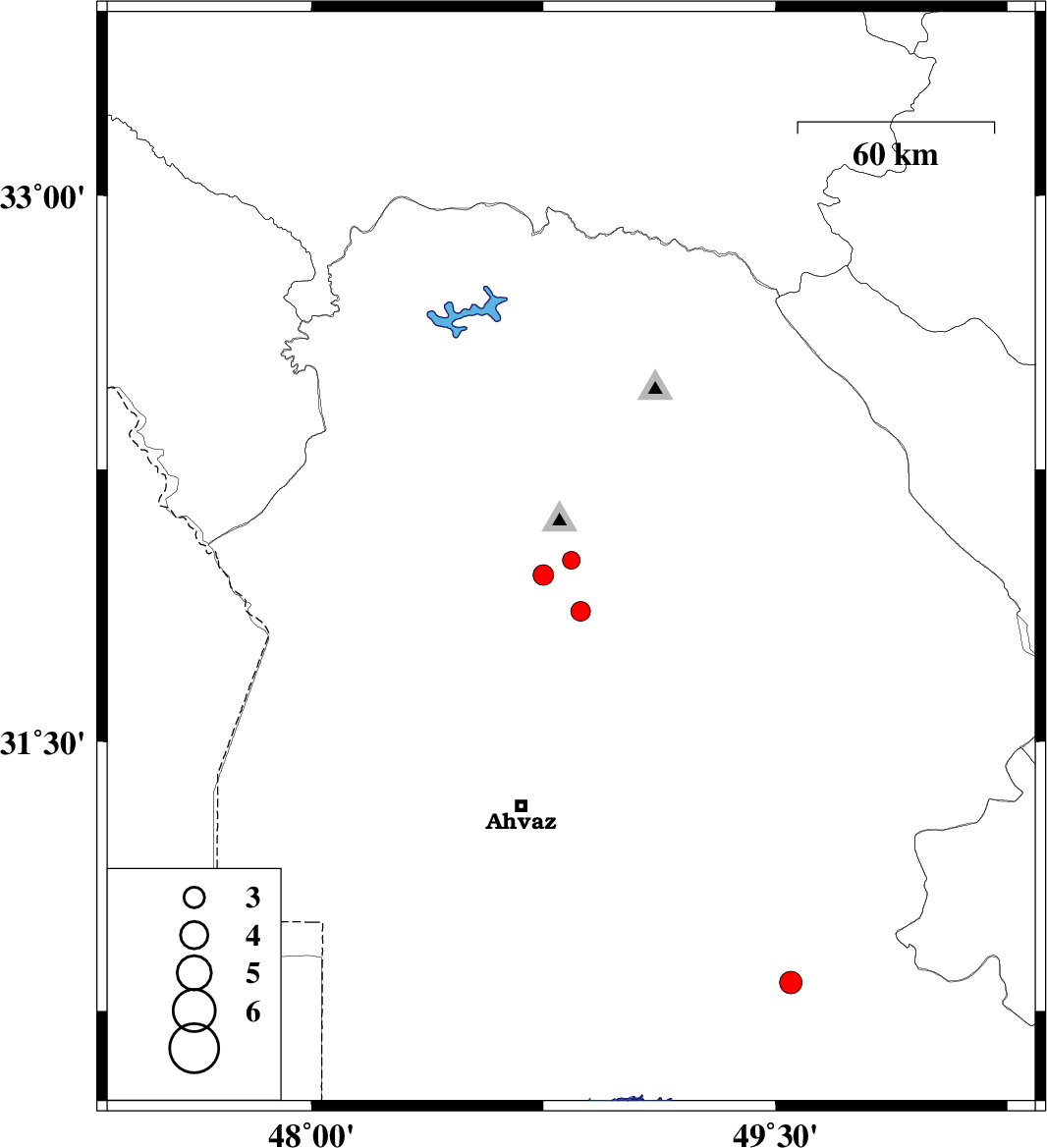 | 2013/05/28 | 15:39:00.3 | 20:09:00.3 | 32 | 48.84 | 15 | ML2.6 | Khoozestan Province, 5 km Shushtar | ||