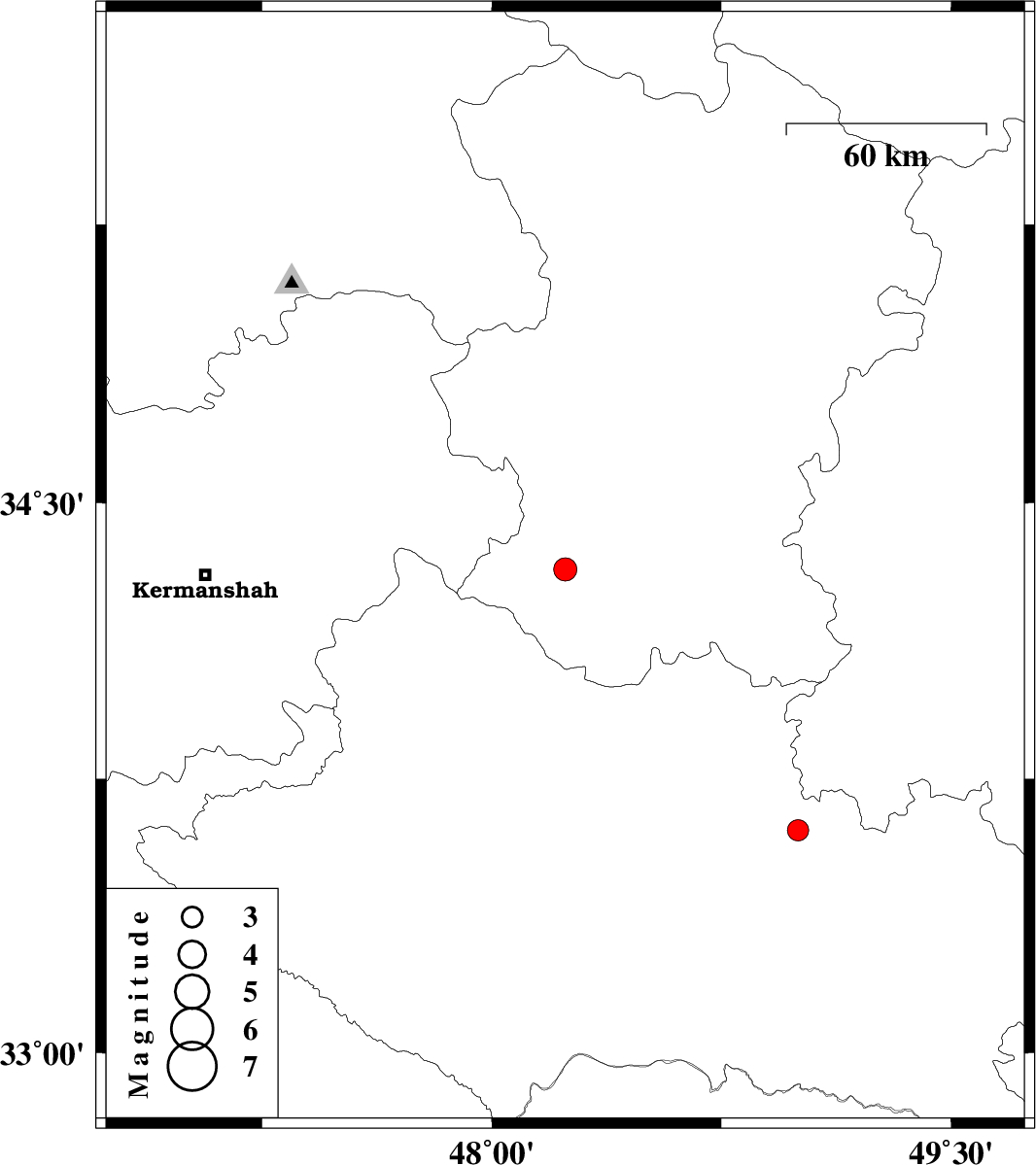 | 2013/06/14 | 17:59:58.1 | 22:29:58.1 | 33.61 | 49 | 22 | ML3.1 | Lorestan Province, 16 km North of Dorud |