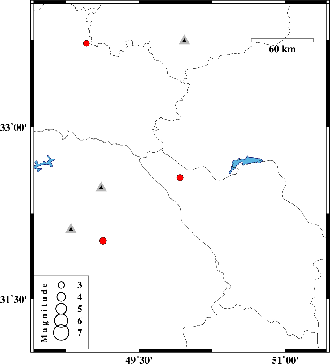 | 2013/06/17 | 02:36:16.0 | 07:06:16.0 | 33.72 | 48.96 | 11 | ML2.8 | Lorestan Province, 28 km North-West of Dorud |