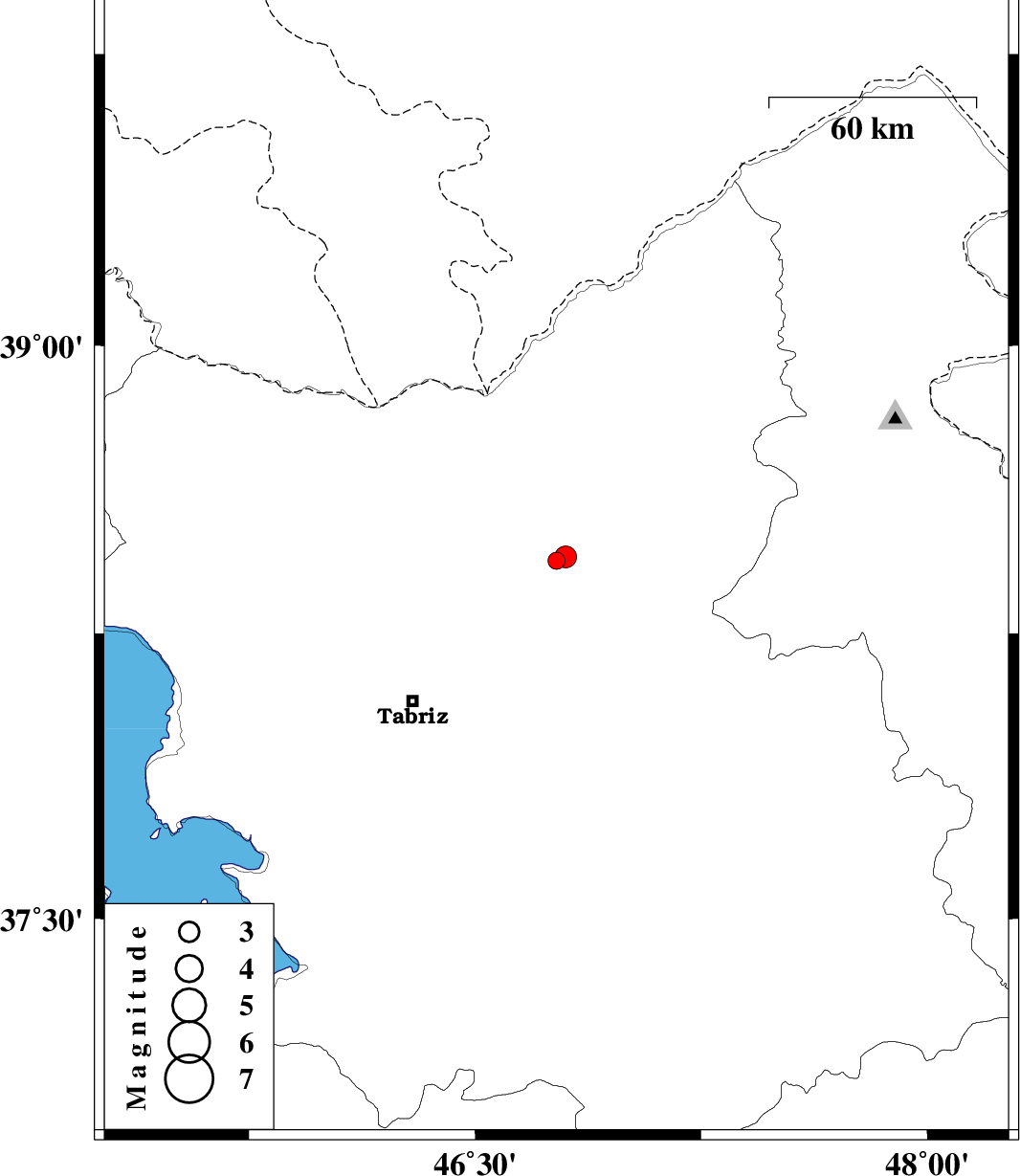 | 2013/06/23 | 14:52:13.9 | 19:22:13.9 | 38.45 | 46.8 | 14 | ML3.3 | Azarbaijan Sharghi Province, 25 km West of Ahar |