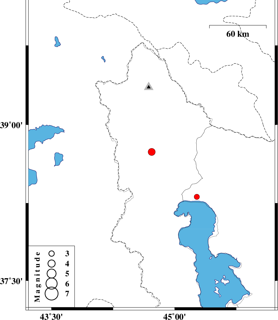 | 2013/06/08 | 09:38:03.3 | 14:08:03.3 | 38.31 | 45.27 | 46 | ML3 | Azarbaijan Sharghi Province, 39 km North-West of Shabestar |