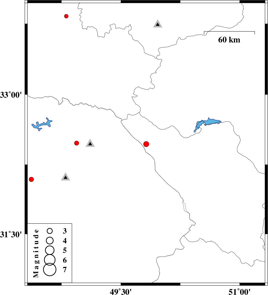 | 2013/07/05 | 07:57:43.1 | 12:27:43.1 | 33.83 | 48.81 | 36 | ML2.3 | Lorestan Province, 9 km Borujerd | ||