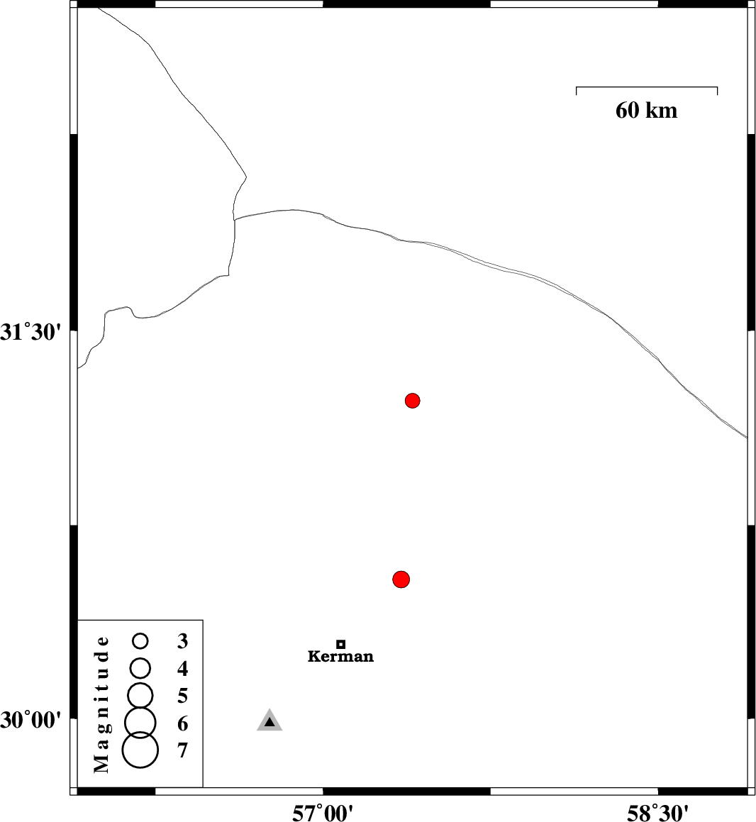 | 2013/07/13 | 07:53:02.6 | 12:23:02.6 | 31.23 | 57.4 | 18 | ML2.9 | Kerman Province, 56 km East of Ravar | ||