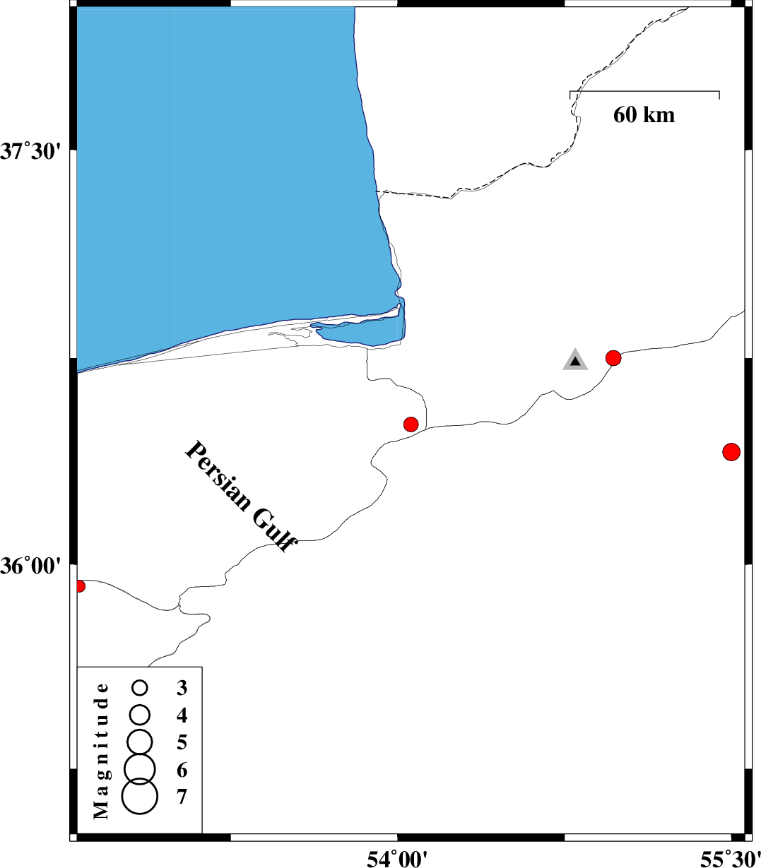 | 2013/07/15 | 00:23:25.8 | 04:53:25.8 | 36.75 | 54.97 | 18 | ML3.1 | Golestan Province, 19 km South-East of Ali Abad | ||